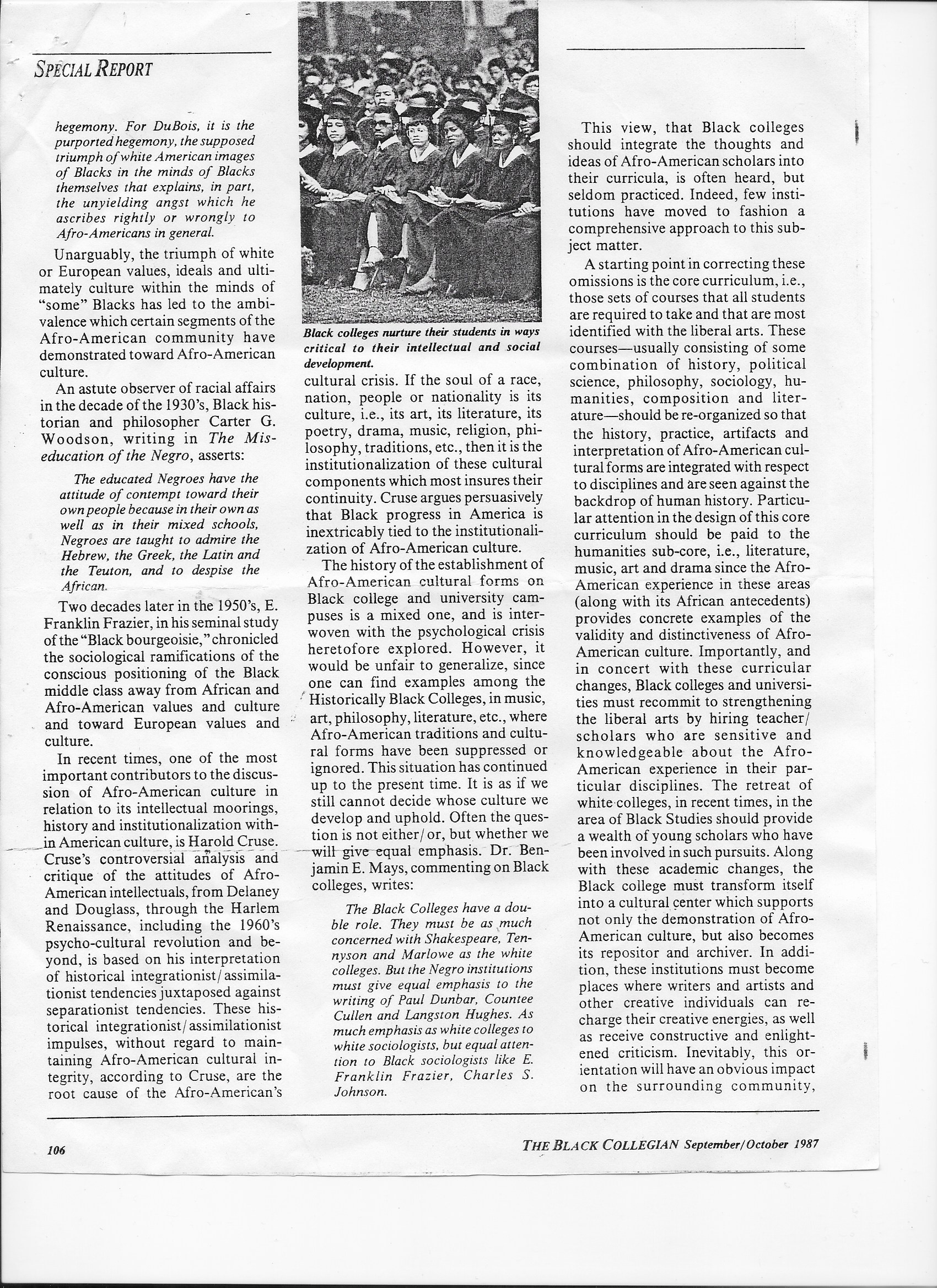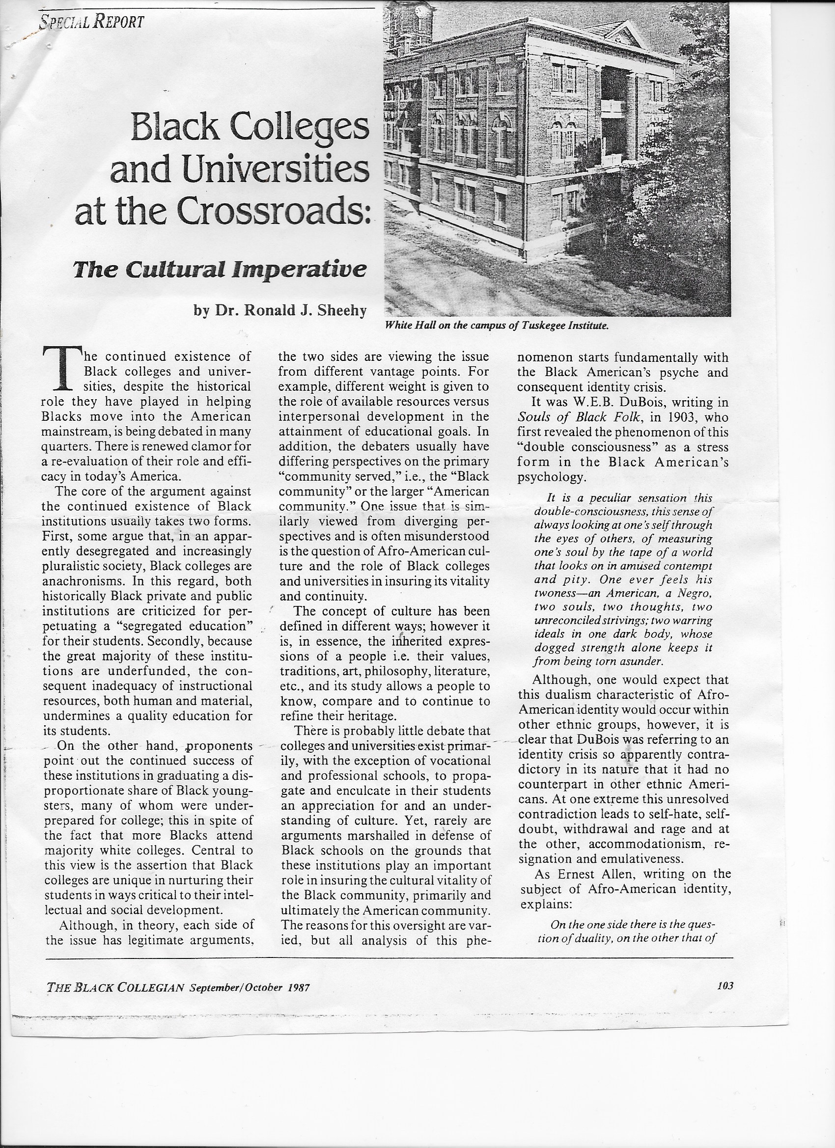 Black Colleges and Universities at the Crossroads: The Cultural Imperative – Dr. Ronald J. Sheehy