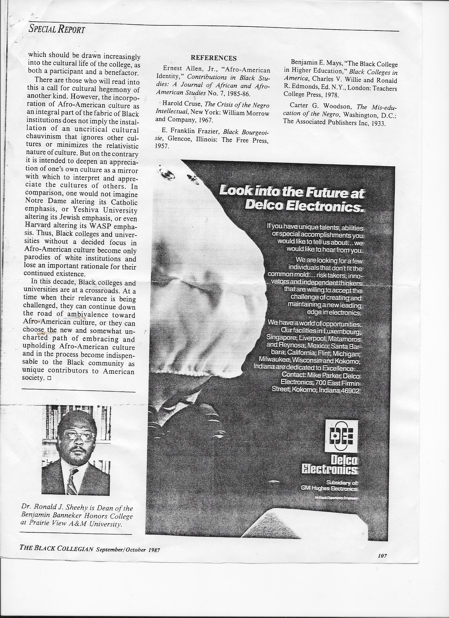 Home Black Colleges and Universities at the Crossroads: The Cultural Imperative – Dr. Ronald J. Sheehy