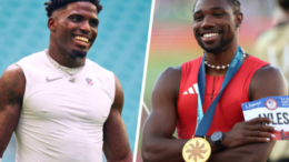 Sports August 27, 2024 Olympic gold medalist Noah Lyles challenged to race by Dolphins receiver Tyreek Hill. By Rohan Nadkarni / NBC News