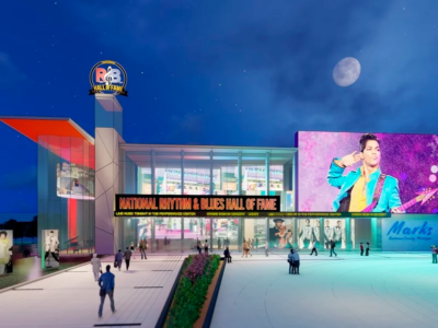This image provided by A2H Engineers, Architects, Planners on Aug. 18, 2022, shows digital rendering of the National Rhythm and Blues Hall of Fame in Marks, Miss.
