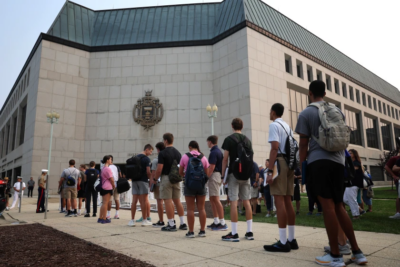 Incoming plebes (freshmen) arrive for Induction Day at the U.S. Naval Academy in June 2023.