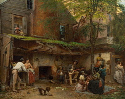 Shown is “Negro Life at the South,” an 1859 oil painting by Eastman Johnson that was later known as “My Old Kentucky Home” and used as proslavery propaganda. (Collection of the New-York Historical Society)