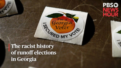 Since the 1960s, Georgia’s majority voting law has required a candidate get 50 percent of the vote or more in order to be declared the winner, and was introduced by a staunch segregationist legislator named Denmark Groover. Even now, the law “makes it more difficult for any group which forms a minority in the population to elect its candidates of choice,” regardless of the candidates’ ethnicity, historian and California Institute of Technology professor Morgan Kousser told the PBS NewsHour’s Nicole Ellis. Read and listen here