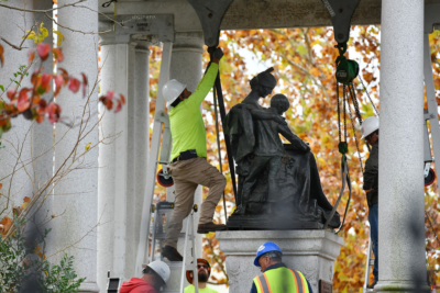Construction workers remove the Women of the Southland monument in Jacksonville last December. | Bob Self/Florida Times-Union via AP