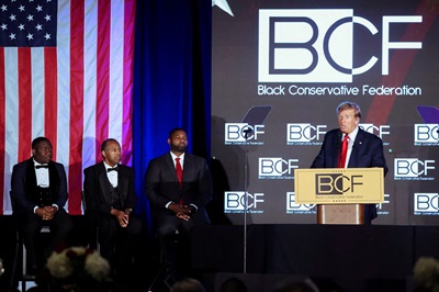At the Black Conservative Federation gala in South Carolina last Friday, Trump received the “Champion of Black America” award. In his lengthy address, Trump went into a monologue of unorthodox — and some would say outright racist — comments about Black people and his supposedlyunique connection to them. Image by Reuters