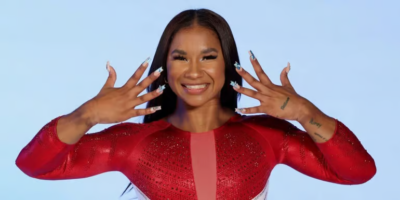 Jordan Chiles is smiling, the beam nearly as bright as the green sweatshirt she’s wearing and the Olympic ring flex of a necklace dangling at the base of her neck. This is not necessarily a departure. Effervescence tends to be Chiles’ default position.