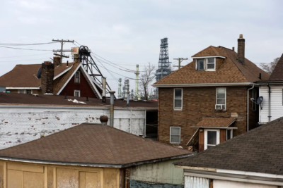 A neighborhood next to a Marathon Petroleum facility in Detroit in 2022. Emma Lockridge left Detroit to escape pollution from industrial sources.Credit…Emily Rose Bennett for The New York Times