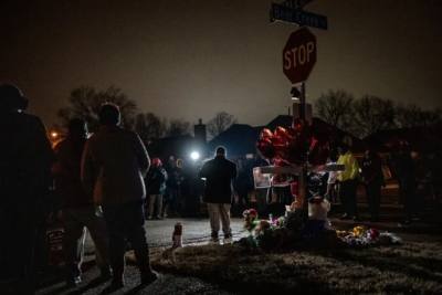People gather and pray to honor the life of Tyre Nichols at the street corner where he was beaten by police officers in Memphis.Credit…Desiree Rios/The New York Times