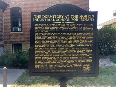 A marker erected by the Minnesota Historical Society marks the site of the dormitory of the former Morris Industrial School for Indians. (Courtesy of Elizabethada Wright)