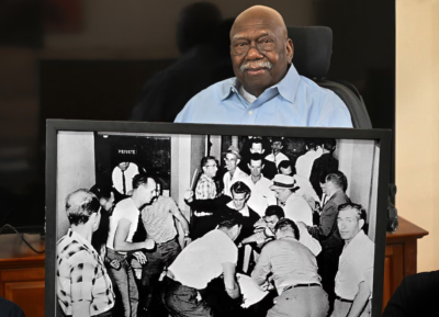 Bruised and bloodied while traveling through the South in 1961, he challenged segregation on interstate buses and in terminal waiting rooms.