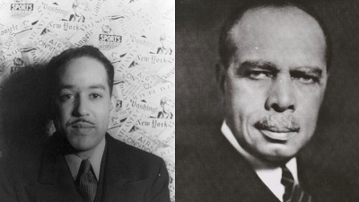 Collage Photo of Langston Hughes by Carl Van Vechten 1936 (Wikimedia) & James Weldon Johnson, poet, lyricist, author and civil rights activist (NYPL)