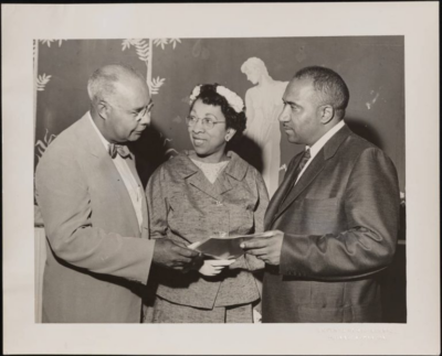 Marion Thompson Wright (center) and two unnamed people. From the Marion Thompson Wright Papers, Pepperdine Libraries Special Collections and Archives.