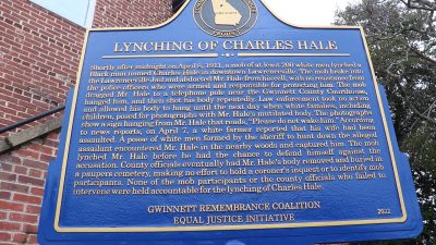 Lawrenceville, Georgia, is acknowledging its racist past by recognizing one of its own who was publicly lynched for all to see 110 years ago with a new historical marker in its town square at the corner of Pike and Perry streets. Charles Hale, who was Black, called the Atlanta suburb of Lawrenceville home along with his wife Willie and daughter in 1911. Hale was 36 years old when he was accused of assaulting a white woman on April 7, and taken to jail according to the News Herald newspaper that covered the horrific events at the time. On April 8, a white mob of at least 200 men later stormed the Lawrenceville jail determined to find Hale and deliver their own form of punishment, a lynching. Read more