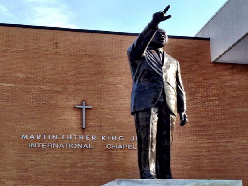 Pictured is MLK statue at the Martin Luther King Jr International Chapel on the Campus of Morehouse College in Atlanta, Ga.
