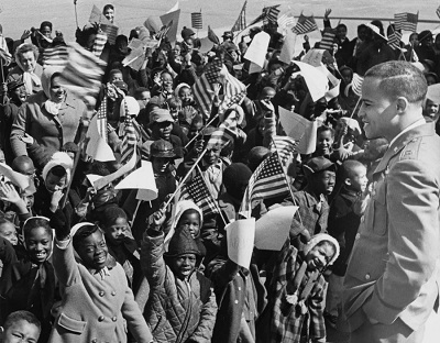 Air Force Captain Edward J. Dwight, Jr. gets a hero’s welcome from youngsters at Langdon Elementary School in Washington, D.C. in 1964.