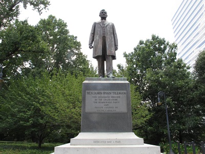 A statue of Benjamin “Pitchfork Ben” Tillman, former South Carolina governor and U.S. senator, in Columbia, S.C., in 2015. Some civil rights leaders want the statue to mention Tillman’s violent segregationist views and role in the Hamburg Massacre, where seven Black people were killed in 1876. (Jeffrey Collins/AP)