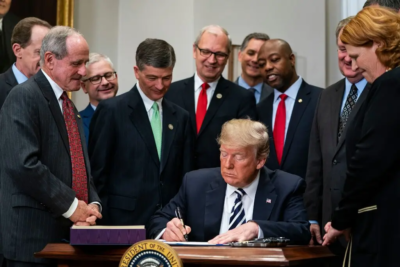 President Donald Trump signed a bill in 2018 that altered the way some banks were regulated, with predictable consequences. Credit…Jim Lo Scalzo/EPA, via Shutterstock
