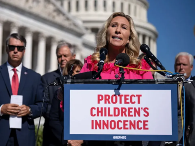 Rep. Marjorie Taylor Greene (R-GA) discussed her legislation named the Protect Childrens Innocence Act on Capitol Hill September 20, 2022 in Washington, DC. (Drew Angerer/Getty Images)