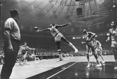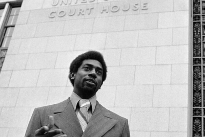 A new book argues that the real history of the league is one of strife between Black labor and white ownership. Shown is Spencer Haywood of the Denver Rockets outside the federal court house in Los Angeles, in November of 1970.Photograph from AP
