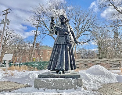 A statue of Harriet Tubman on the plaza of the New York State Equal Rights Heritage Center in Auburn, N.Y. (Andrea Sachs/The Washington Post)