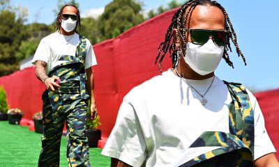 Lewis Hamilton steps out in stylish green camouflage dungarees ahead of the Spanish Grand Prix. By Amelia Wynne / Daily Mail