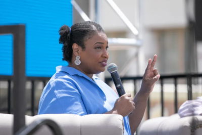 Stacey Abrams speaking at the 43rd annual LA Times Festival of Books on Sunday, April 23, 2023 in Los Angeles, CA. Jason Armond—Los Angeles Times/Getty Images