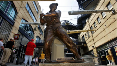 Negro Leagues legend and Pittsburgh native Josh Gibson’s statue is front and center in Legacy Square at PNC Park in Pittsburgh on June 29, 2006.