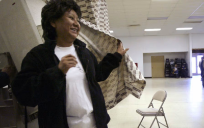 Indigenous organizers and activists say that the party can’t afford to overlook them any longer. Shown is Sharon Lewis, a Pueblo of Acoma Native, votes in Acoma, N.M. (Rick Scibelli / Getty Images)