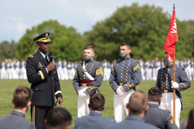 Virginia Military Institute Superintendent Cedric T. Wins speaks during a change-of-command ceremony at the school in Lexington, Va., last year. (Parker Michels-Boyce for The Washington Post)