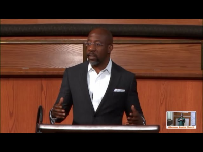 The Ebenezer Baptist pastor touched on the theme of re-establishing a “firm foundation in a shaky world.” “This past Tuesday was a tough reminder that we live in a shaky world,” the Democratic senator said. Listen and watch here