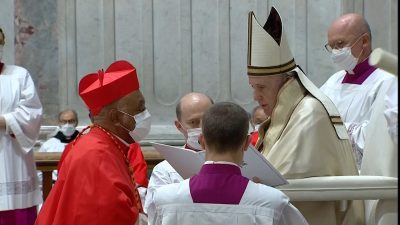 Wilton Gregory, the archbishop of Washington, became the first Black American to earn the rank of cardinal Saturday in a pandemic-altered Vatican ceremony that was strange and historic like none before it. Because of coronavirus travel concerns, two of the 13 new cardinals did not come to Rome. The others wore masks and sat in socially distanced rows inside St. Peter’s Basilica. Gregory, like some other new cardinals, had quarantined for 10 days before the ceremony at a Vatican resident building, with meals and towels dropped off at his door. Read more and watch here.