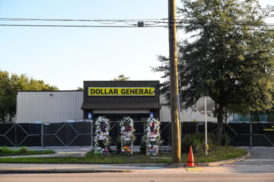The plastic has long since fallen off, leaving the bronze figures honoring the “Lost Cause” visible to anyone passing by. Like so many aspects of Jacksonville, they symbolize the challenges that Florida’s biggest city continues to face in reckoning with its racist past. Seven weeks after the fatal shooting outside Dollar General in Jacksonville, memorials remain for the three Black residents who died. (Joshua Lott/The Washington Post)
