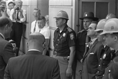 Representatives of the Department of Justice confronting George Wallace as he took a stand against integration at the University of Alabama.Credit…Bettmann Archive/Getty Images