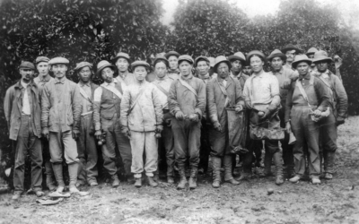 Ahn Chang Ho, Kap Suk Cho and other workers at a Riverside orange orchard in the early 1900s.Courtesy of Korean Heritage Library, University of Southern California