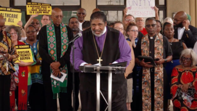 As a storm loomed over Springfield, Ohio, Sunday afternoon (Sept. 22), some 60 Ohio faith leaders gathered outside the city’s Greater Grace Temple to welcome the Rev. William Barber II, who was invited to the city by clergy to push back against former President Trump and vice president-hopeful J.D. Vance’s campaign messages about Haitian immigrants in the city. “Do not reject God by rejecting your Haitian neighbor,” said Barber, the Disciples of Christ pastor and founder of Repairers of the Breach, a civil rights and anti-poverty organization. “Take your lies, take your foot, take your oppression, take your distortion off the back of our immigrant brothers and sisters. It’s gone on far too long, and we won’t be silent anymore.” Read more